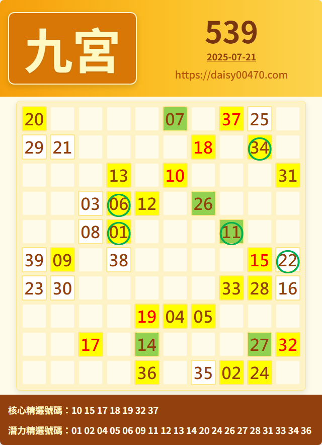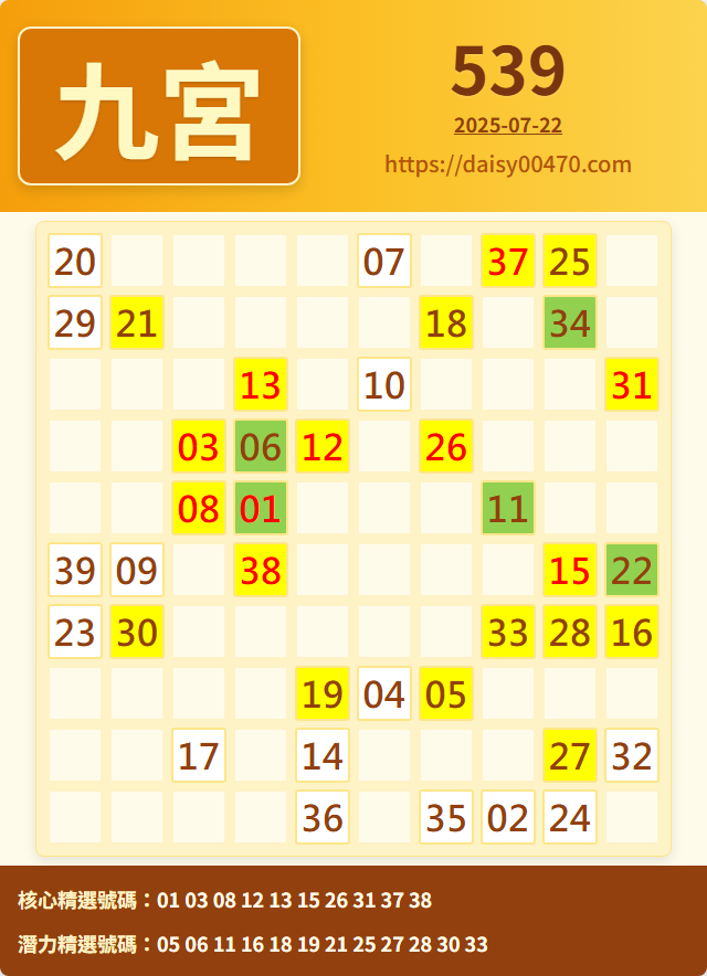 7/22 今彩539 九宮 精選 高機牌 合牌參考