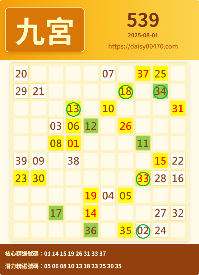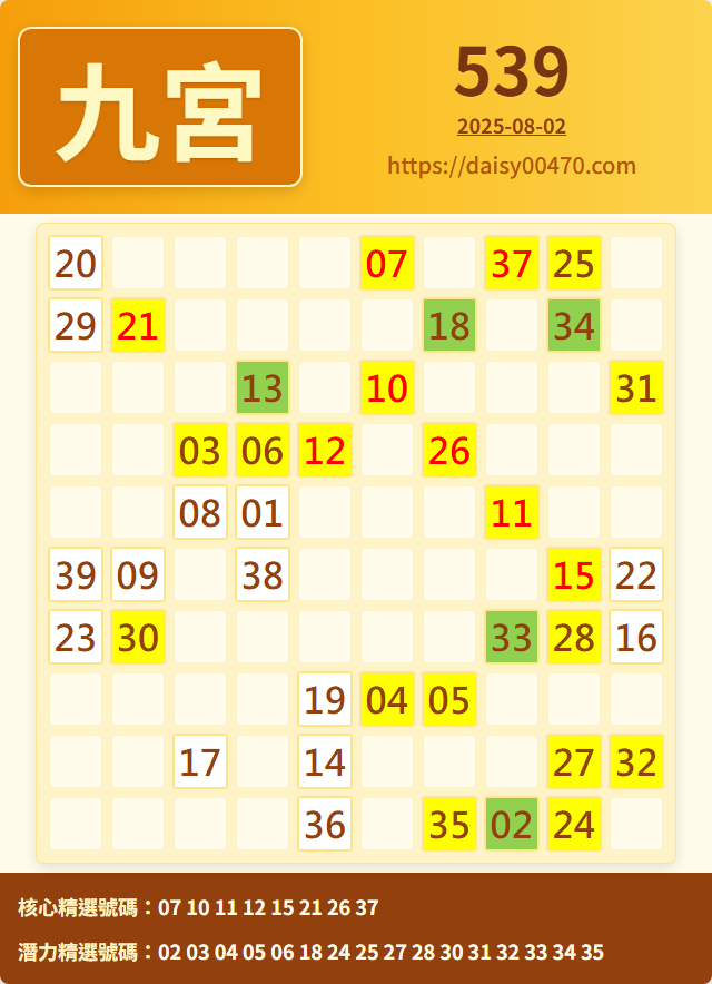 8/2 今彩539 九宮 精選 高機牌 合牌參考