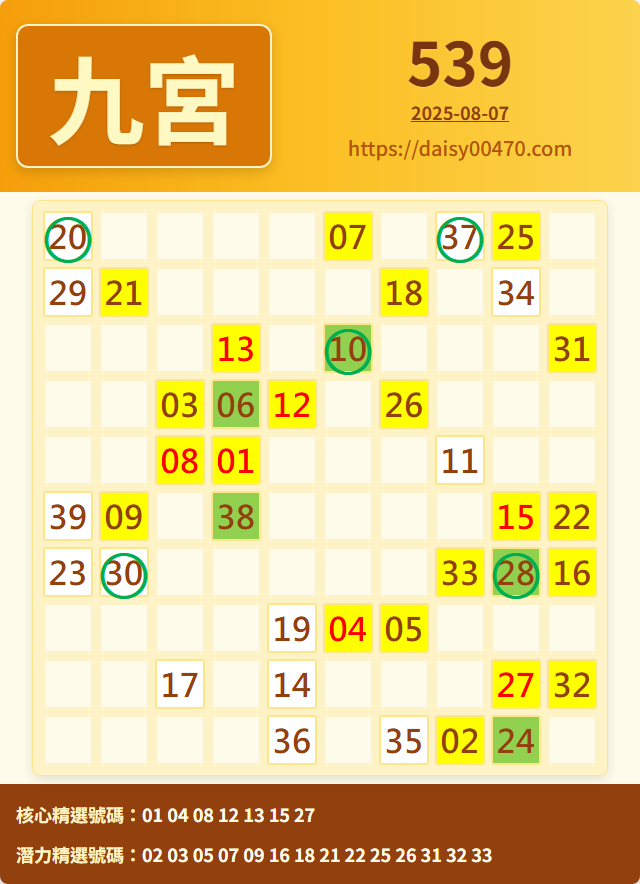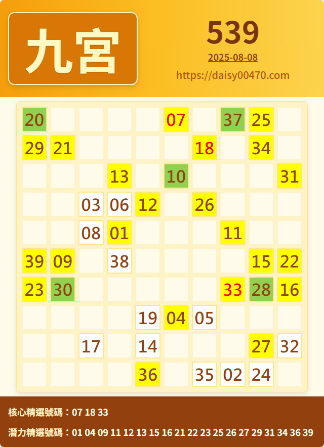 8/8 今彩539 九宮 精選 高機牌 合牌參考