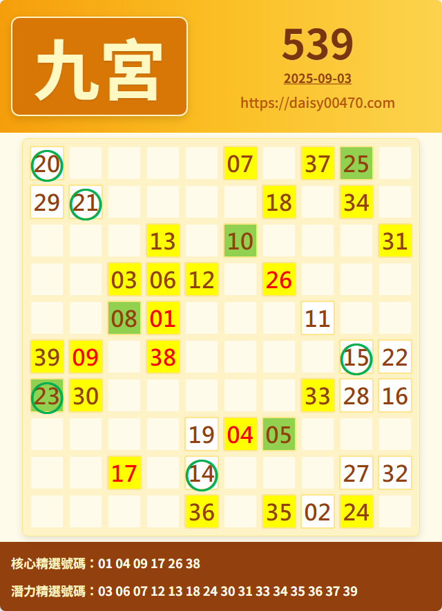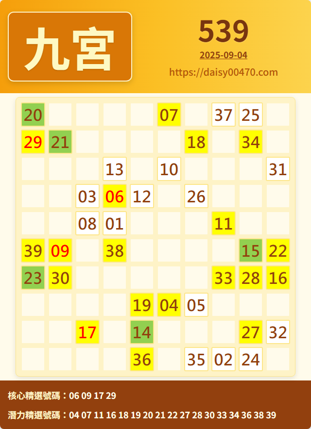 9/4 今彩539 九宮 精選 高機牌 合牌參考