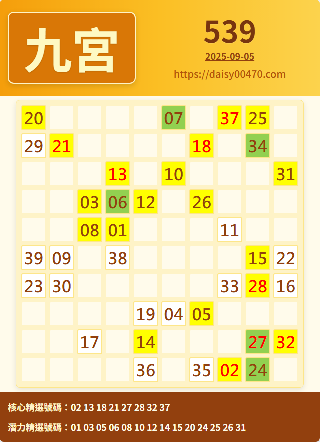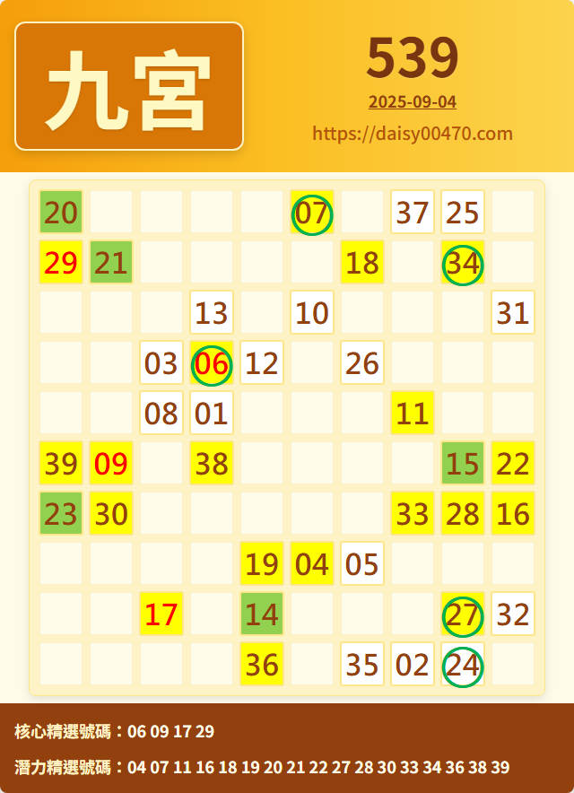 9/5 今彩539 九宮 精選 高機牌 合牌參考