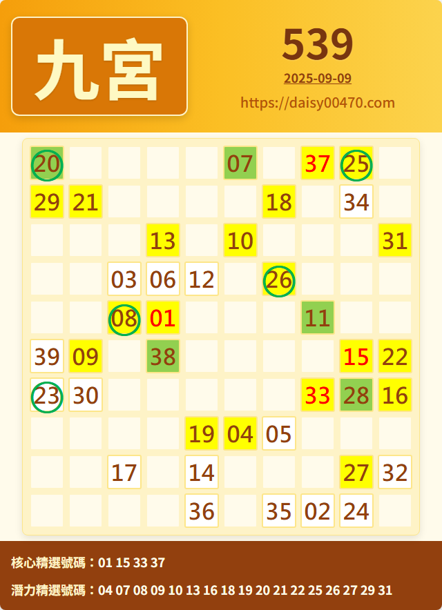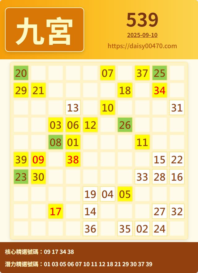 9/10 今彩539 九宮 精選 高機牌 合牌參考