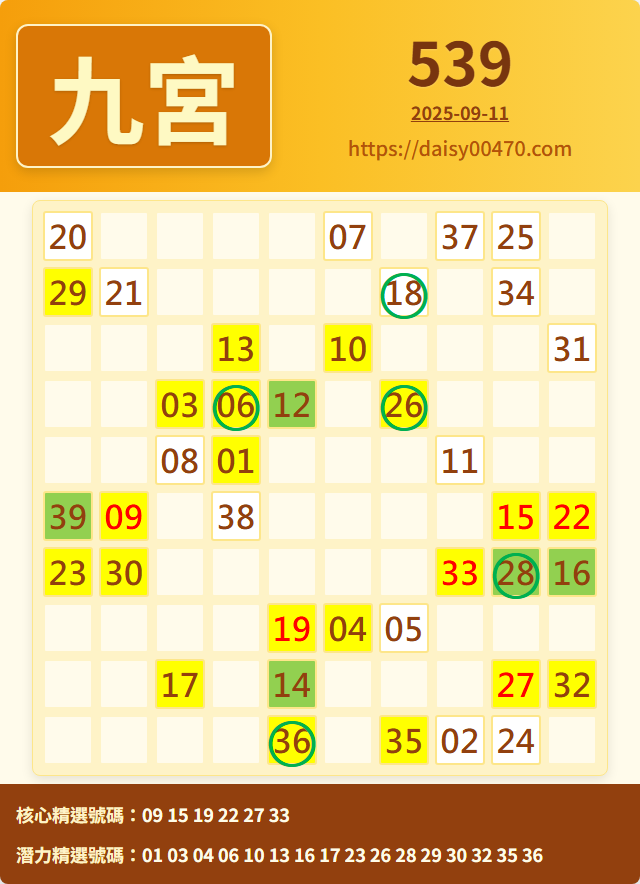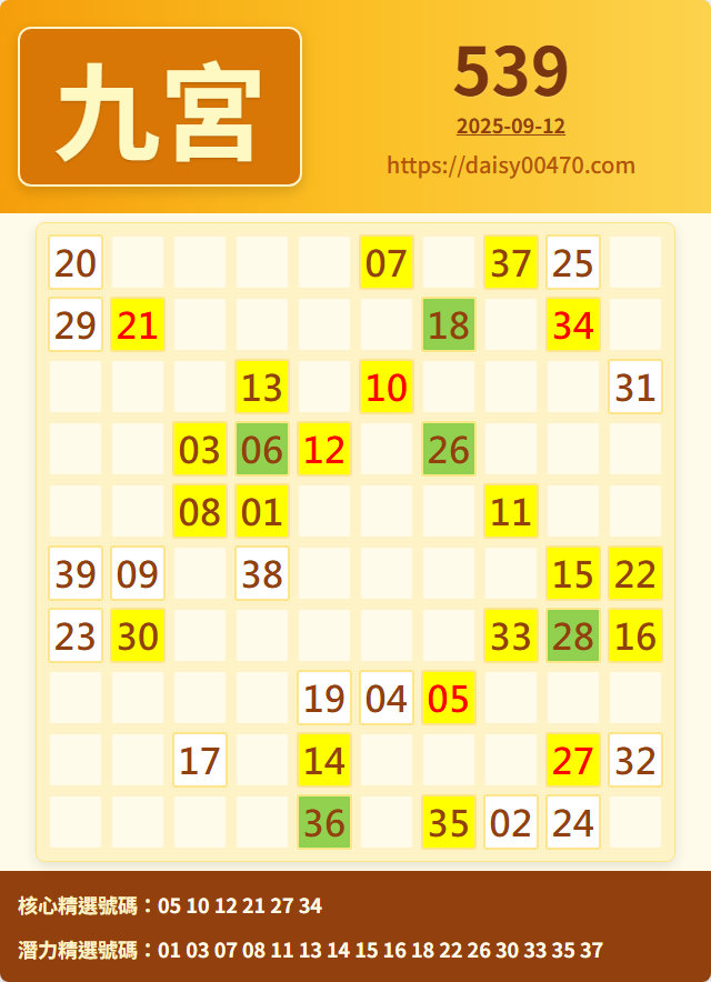 9/12 今彩539 九宮 精選 高機牌 合牌參考
