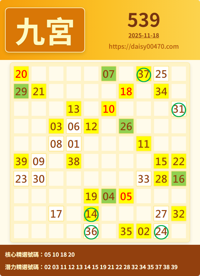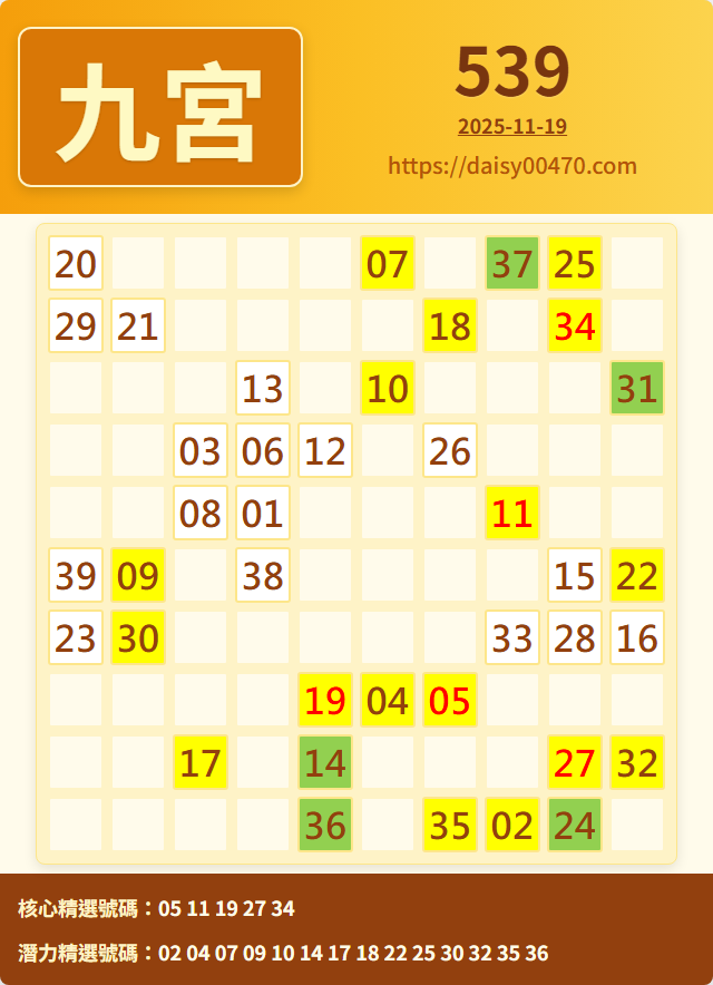 11/19 今彩539 九宮 精選 高機牌 合牌參考