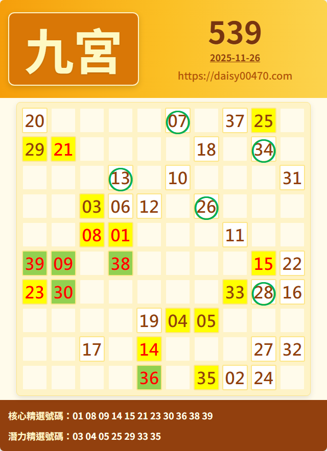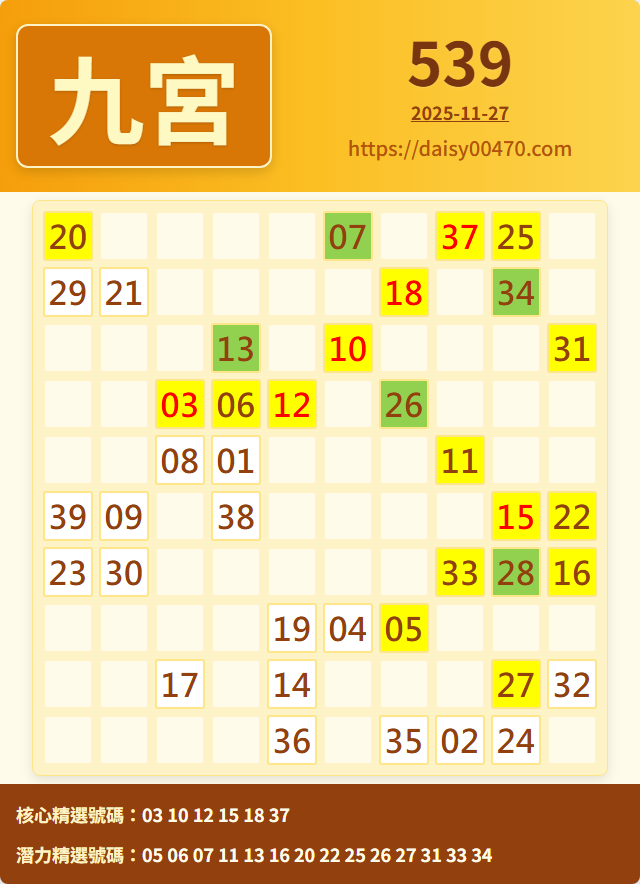 11/27 今彩539 九宮 精選 高機牌 合牌參考