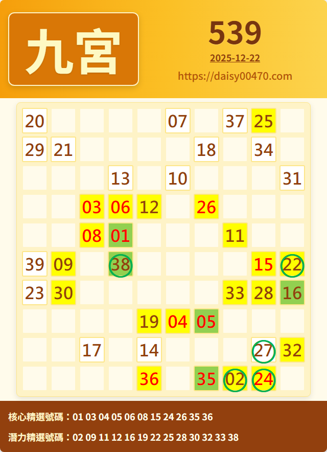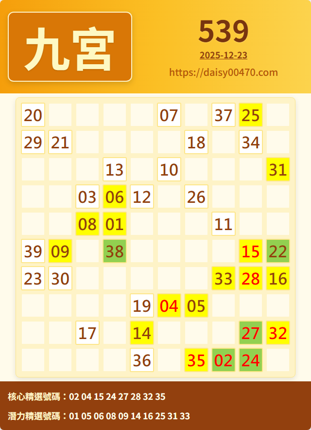 12/23 今彩539 九宮 精選 高機牌 合牌參考