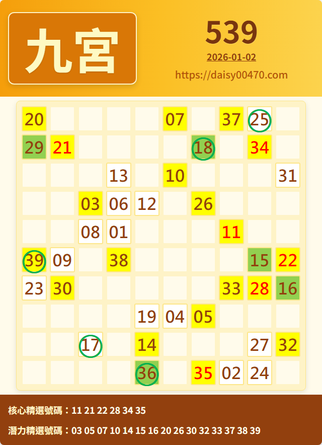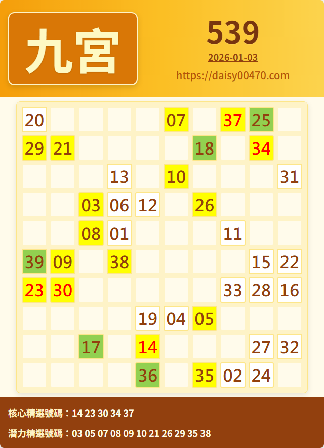 1/3 今彩539 九宮 精選 高機牌 合牌參考