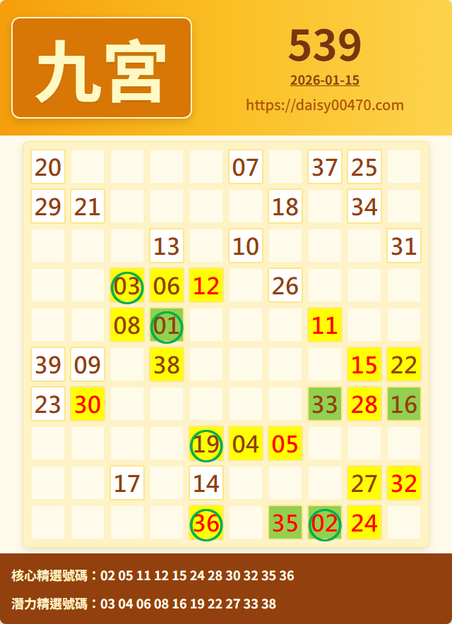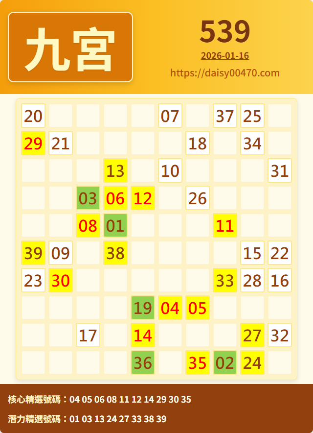 1/16 今彩539 九宮 精選 高機牌 合牌參考