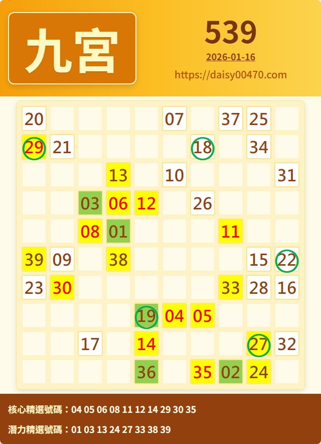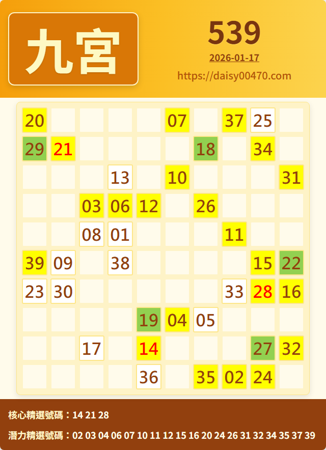 1/17 今彩539 九宮 精選 高機牌 合牌參考