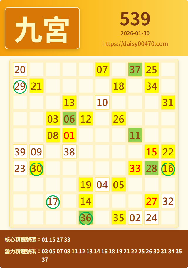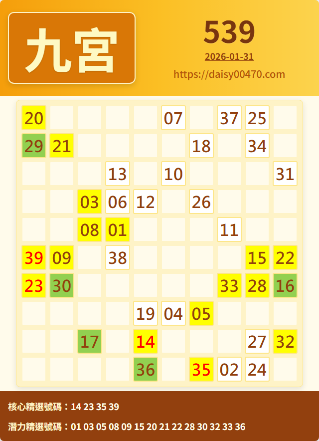 1/31 今彩539 九宮 精選 高機牌 合牌參考