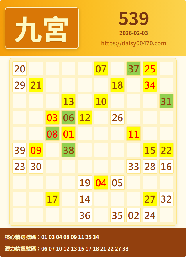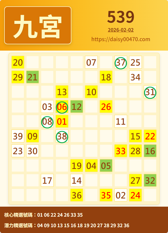 2/3 今彩539 九宮 精選 高機牌 合牌參考