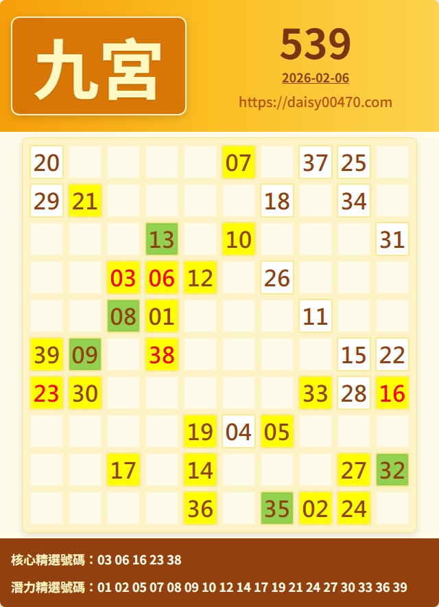 2/6 今彩539 九宮 精選 高機牌 合牌參考