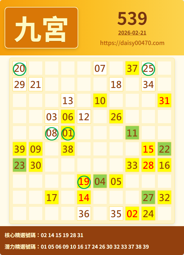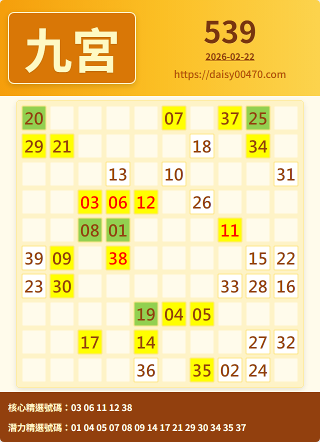 2/22 今彩539 九宮 精選 高機牌 合牌參考