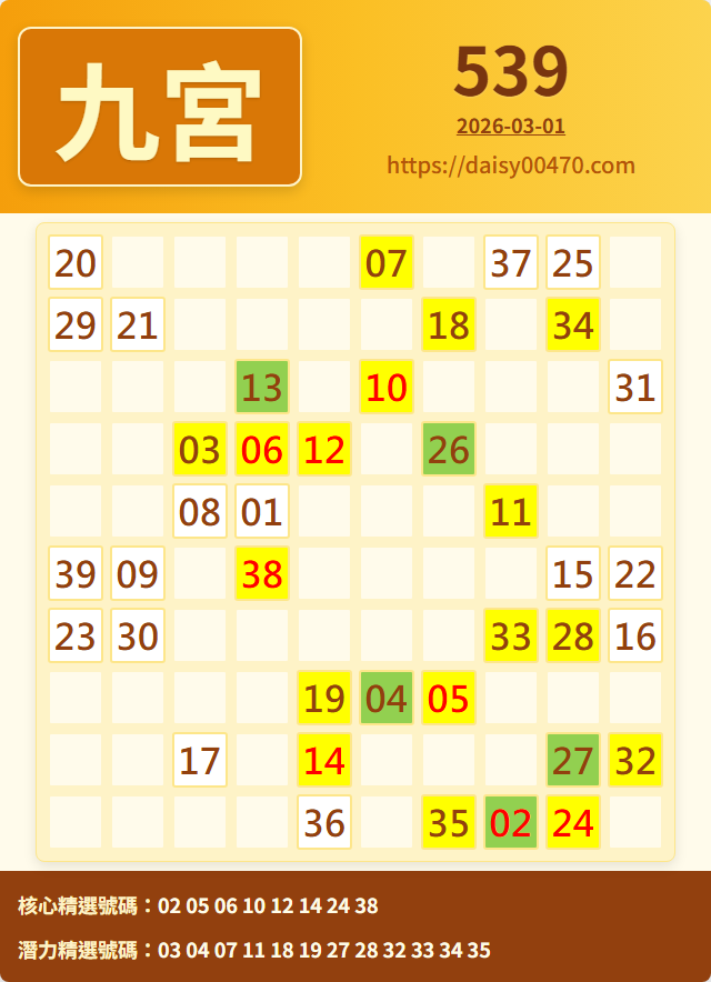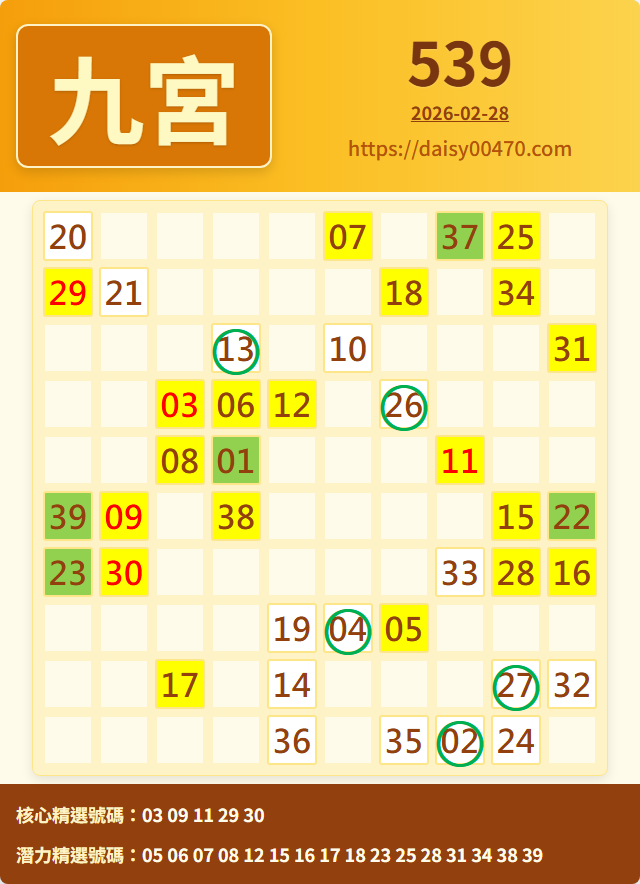 3/1 今彩539 九宮 精選 高機牌 合牌參考