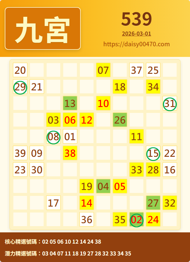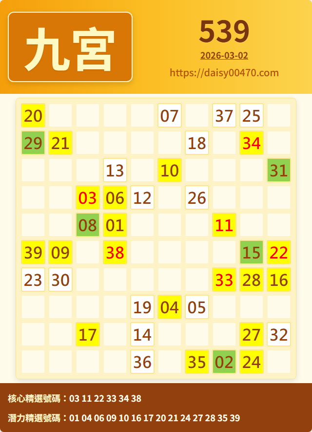 3/2 今彩539 九宮 精選 高機牌 合牌參考