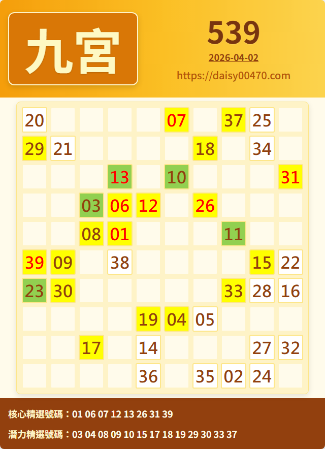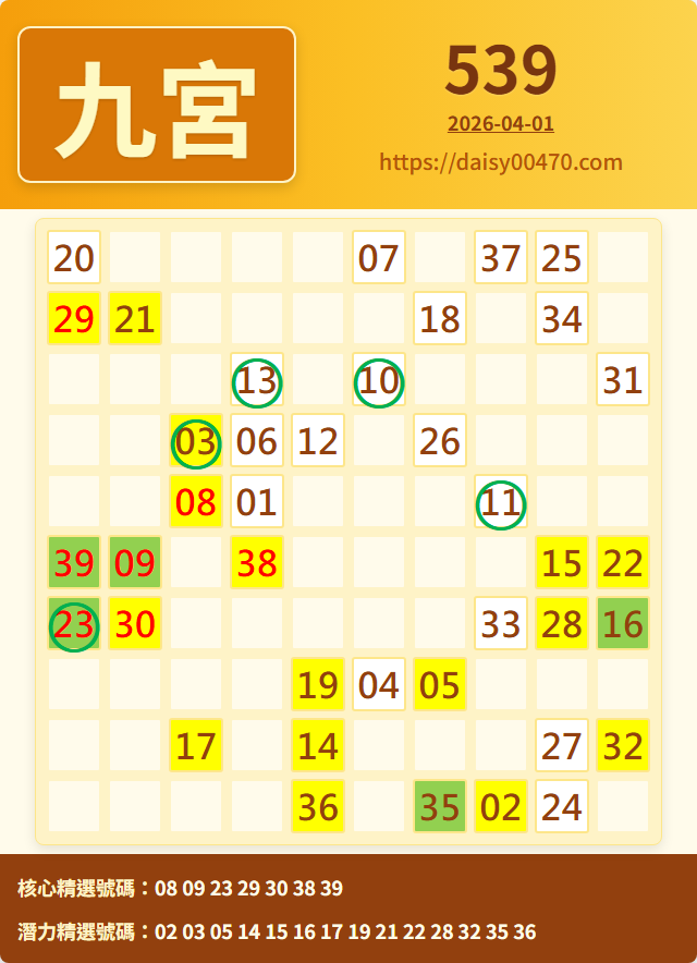 4/2 今彩539 九宮 精選 高機牌 合牌參考