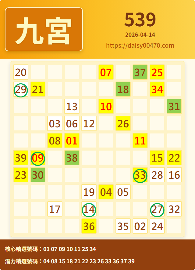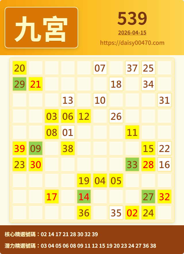 4/15 今彩539 九宮 精選 高機牌 合牌參考