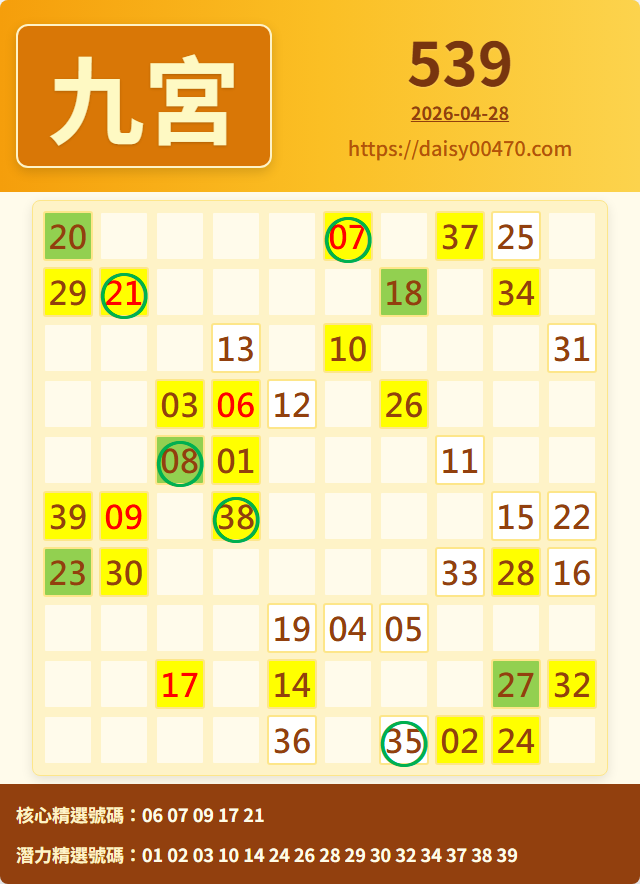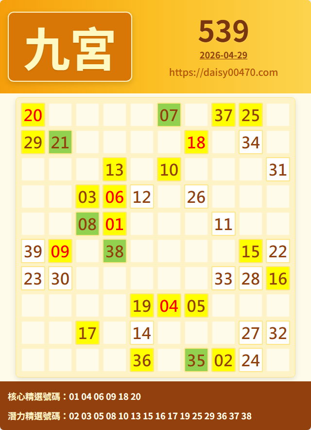 4/29 今彩539 九宮 精選 高機牌 合牌參考