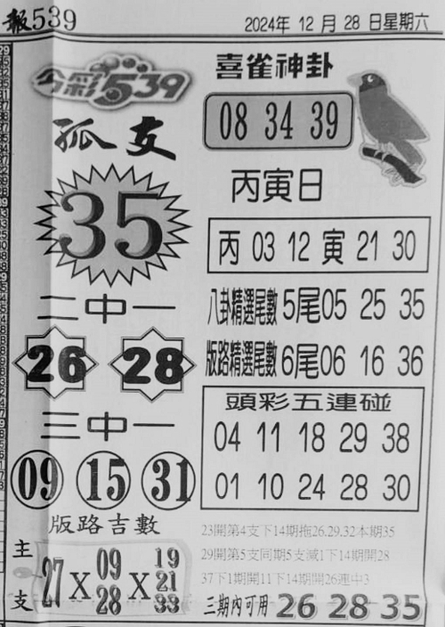 12/28 今彩539 台北鐵報