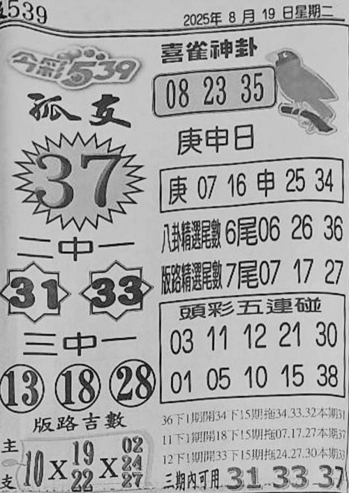 鐵報不出牌:04 09 14 20 23 29 32 39