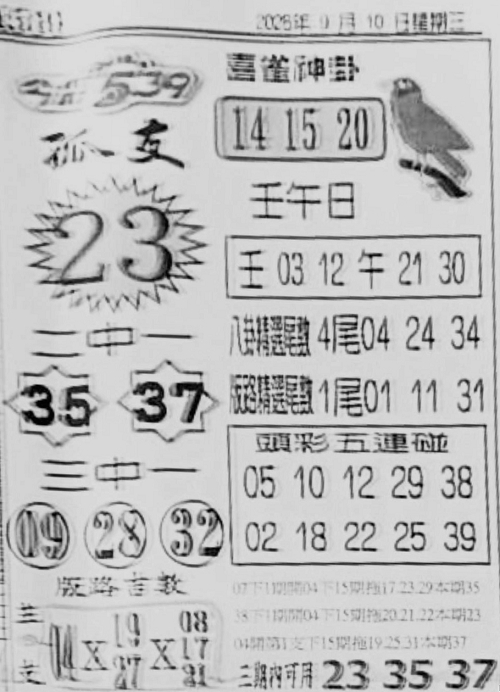 9/10 今彩539 台北鐵報