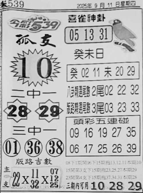9/11 今彩539 台北鐵報