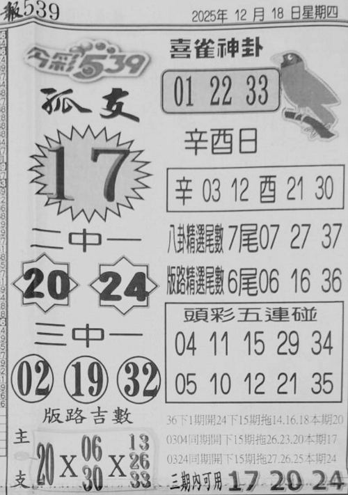 12/18 今彩539 台北鐵報