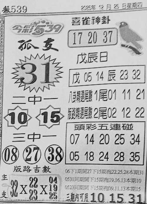 12/25 今彩539 台北鐵報