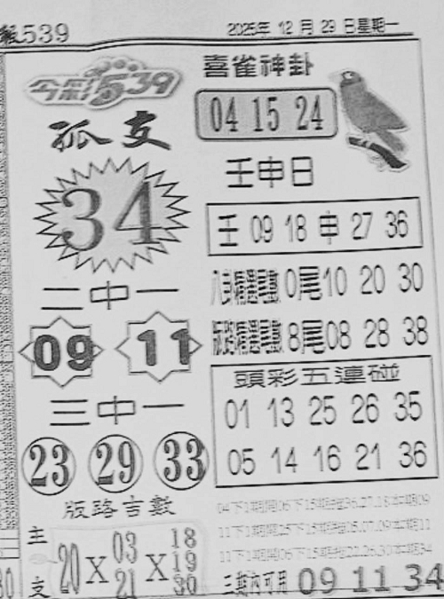 12/29 今彩539 台北鐵報