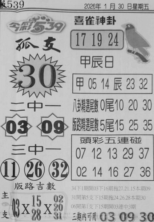 1/30 今彩539 台北鐵報