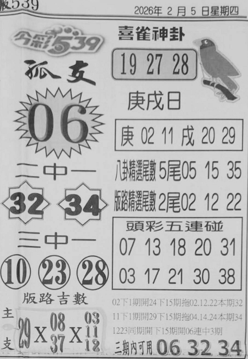 2/5 今彩539 台北鐵報
