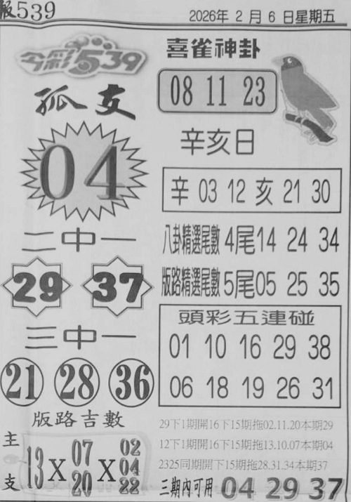 2/6 今彩539 台北鐵報