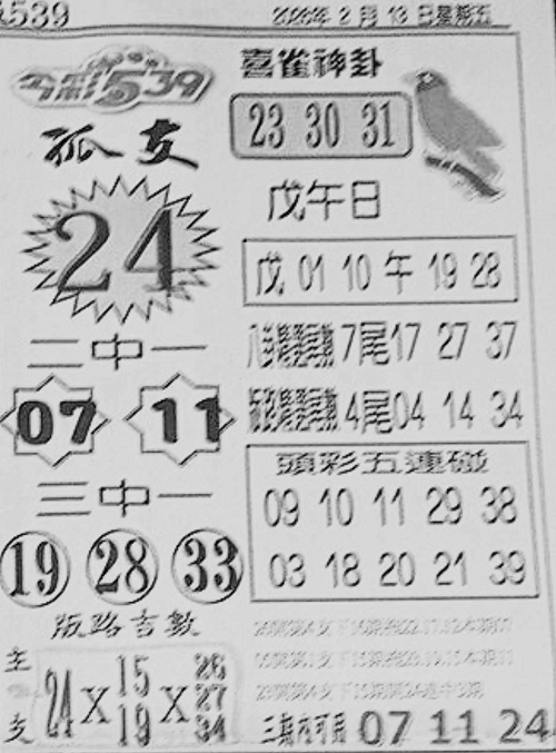 2/13 今彩539 台北鐵報