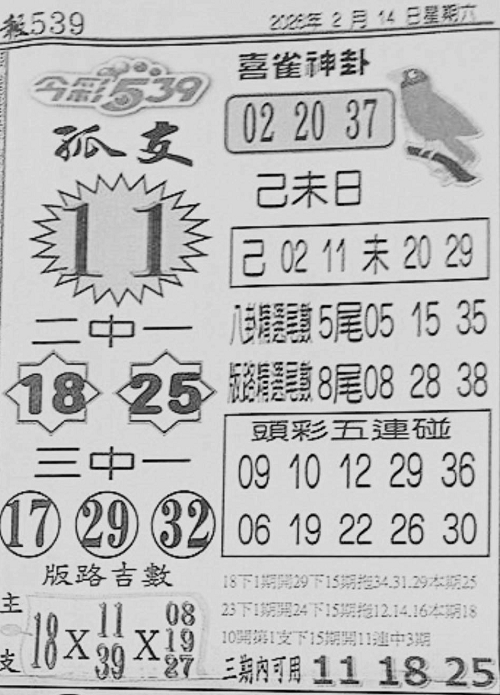 2/14 今彩539 台北鐵報