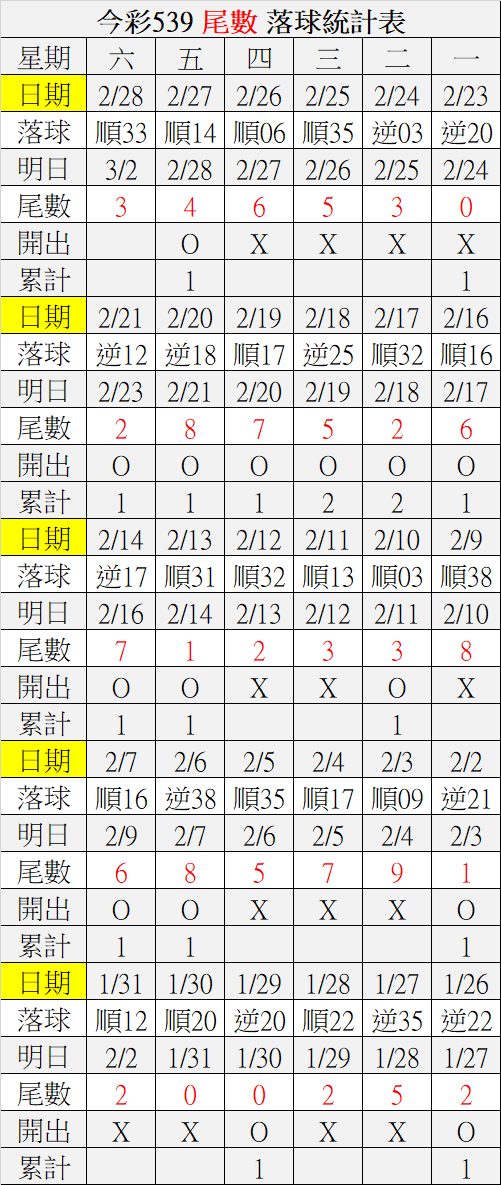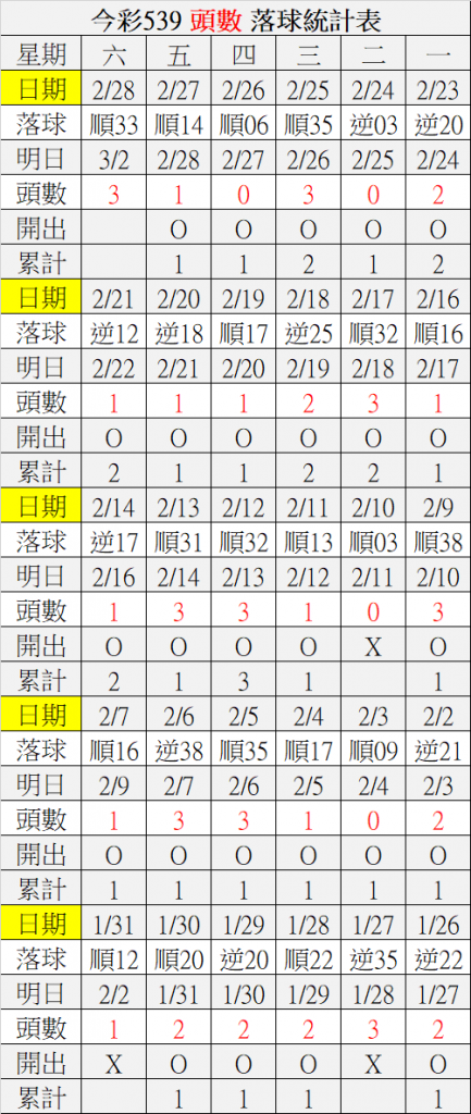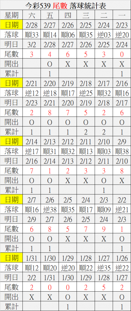 3/2 今彩539 落球順序表