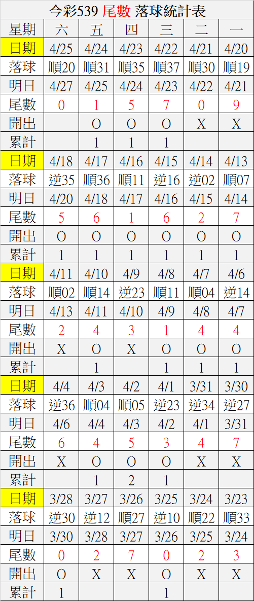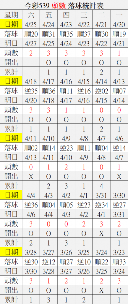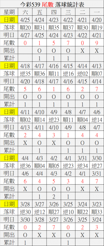 4/27 今彩539 落球順序表