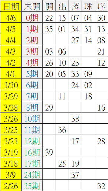 4/8 今彩539 遠星統計表