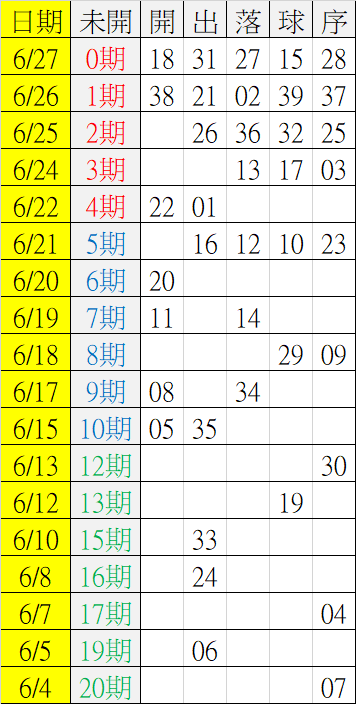 6/28 今彩539 遠星統計表