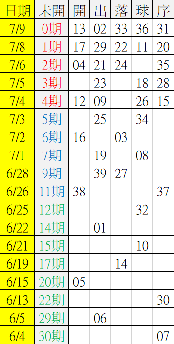 7/10 今彩539 遠星統計表