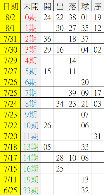 遠星號碼:05 08 10 13 25 28 32 33 共計8支。