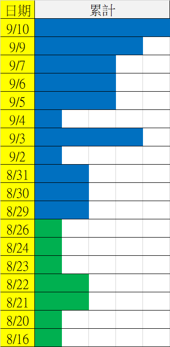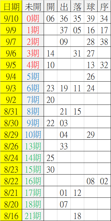 9/11 今彩539 遠星統計表
