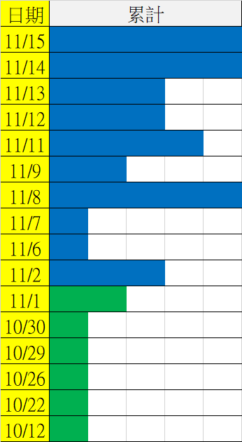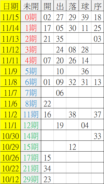 11/16 今彩539 遠星統計表