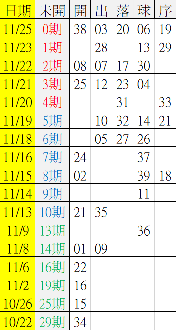 11/26 今彩539 遠星統計表