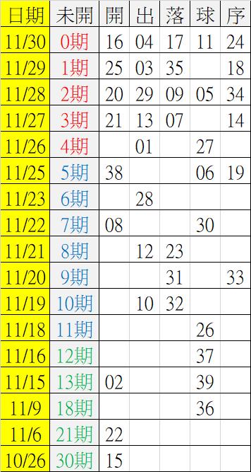 12/2 今彩539 遠星統計表