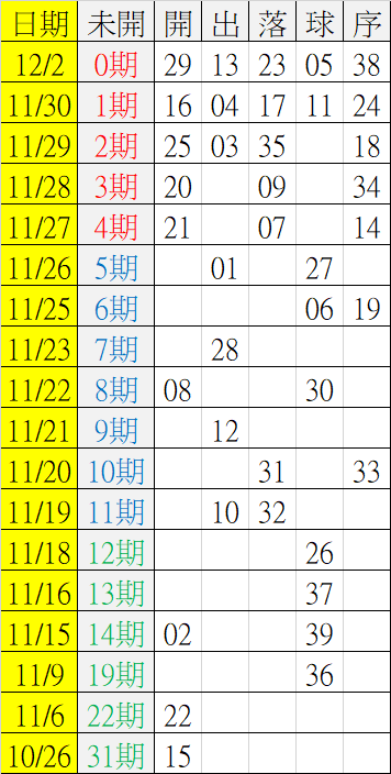 12/3 今彩539 遠星統計表
