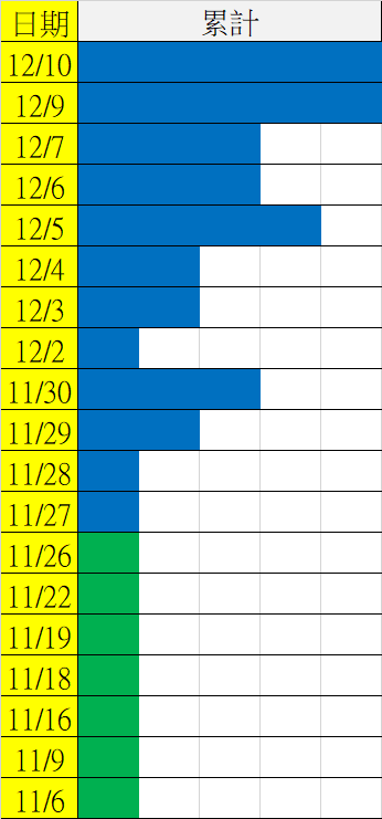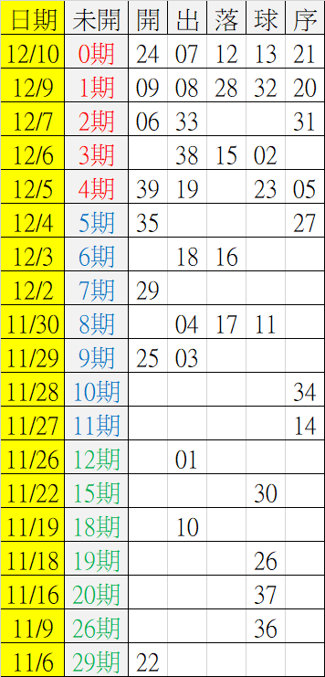 12/11 今彩539 遠星統計表