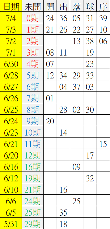 7/5 今彩539 遠星統計表