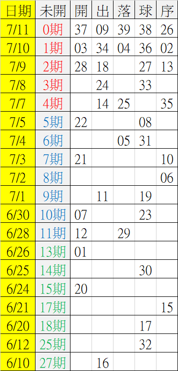 7/12 今彩539 遠星統計表