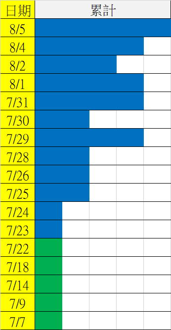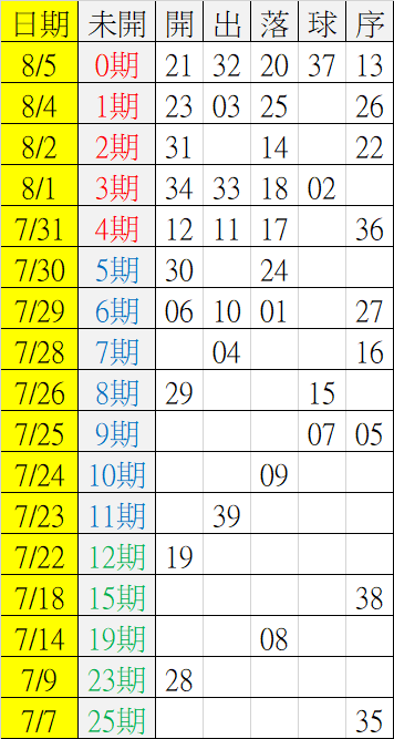 8/6 今彩539 遠星統計表