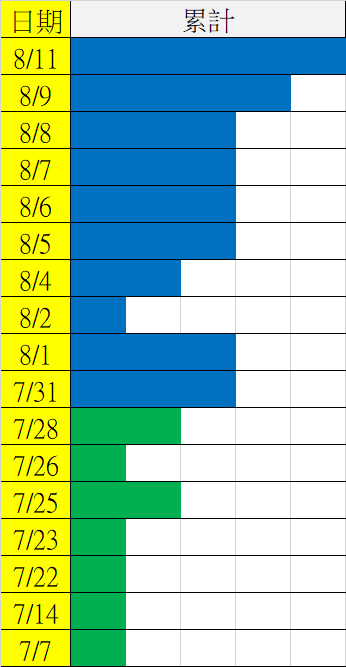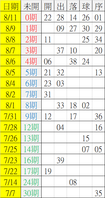 8/12 今彩539 遠星統計表